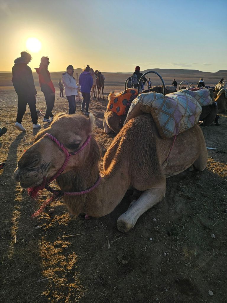 そしてラクダ。実は馬にも乗ったことがなく、唯一乗ったことがあるのがロバ。高さが比べ物になりません。跳馬の上の部分位の大きさがある鞍に踏み台なしで、この足の長さでまたいで乗れというのか?!と一瞬ひるみましたが、なんとか乗れました。