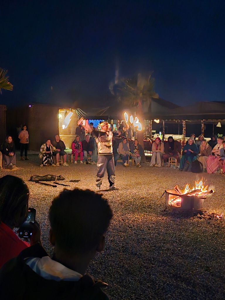 ヒトコブラクダの荷重限度が150㎏だそうで、馬具も重そうだし、ほんとにごめんなさい。それとヨガのクラスはさぼっちゃいけないと痛感しました。その後はタジン鍋のビュッフェとショー。