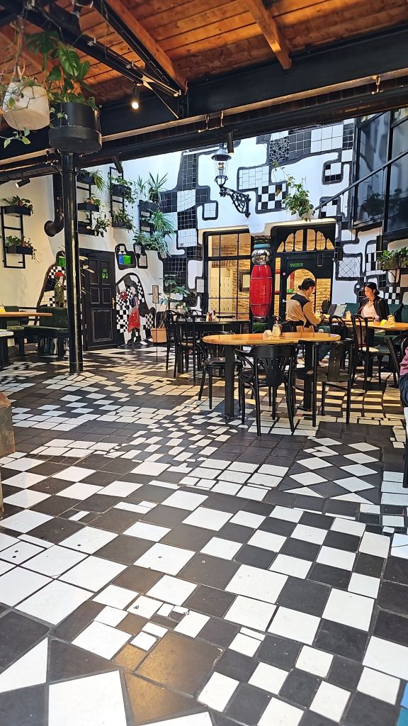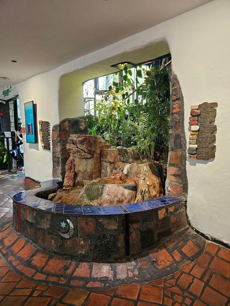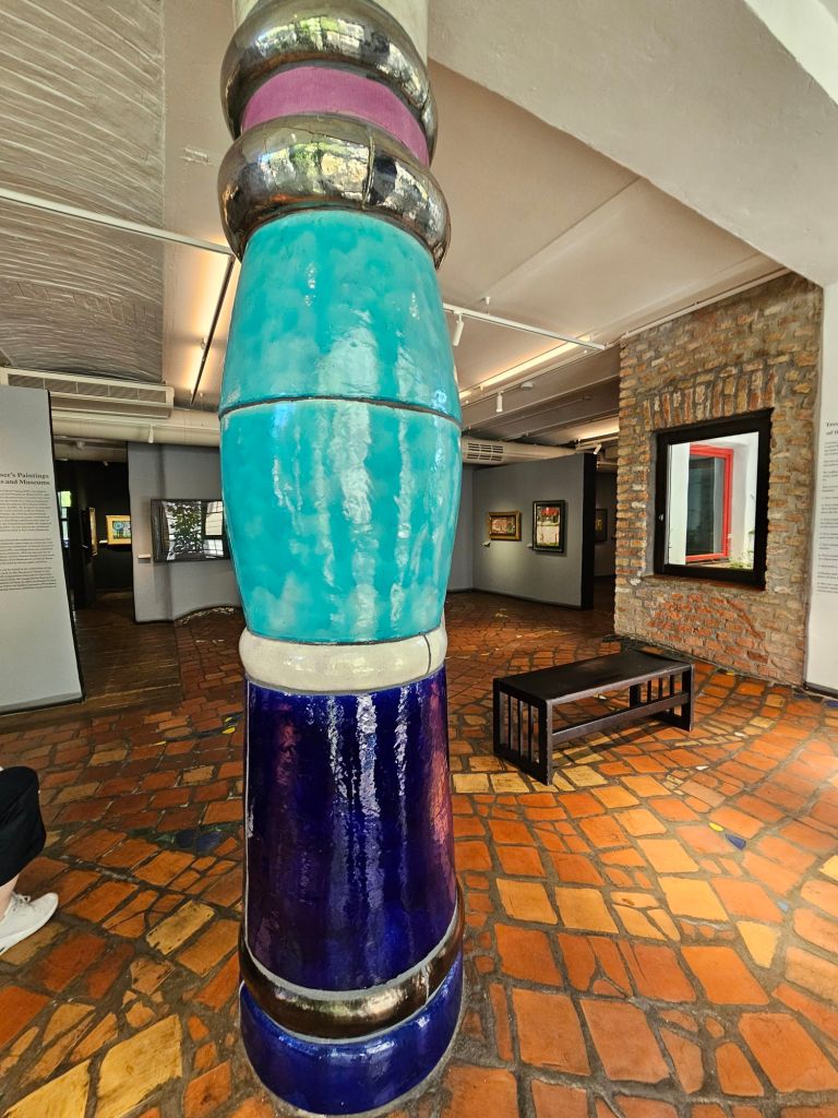 オーストリアの画家で建築家のフンデルトヴァッサーの博物館。近くには彼が設計、建築したエコロジーを意識したカラフルなフンデルトヴァッサーハウスとビレッジがありますが、こちらも大胆。曲線は壁や窓だけではなく、床もうねっています。
