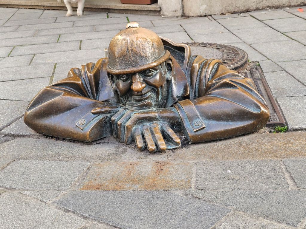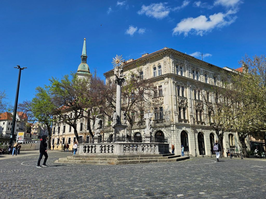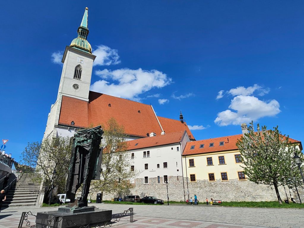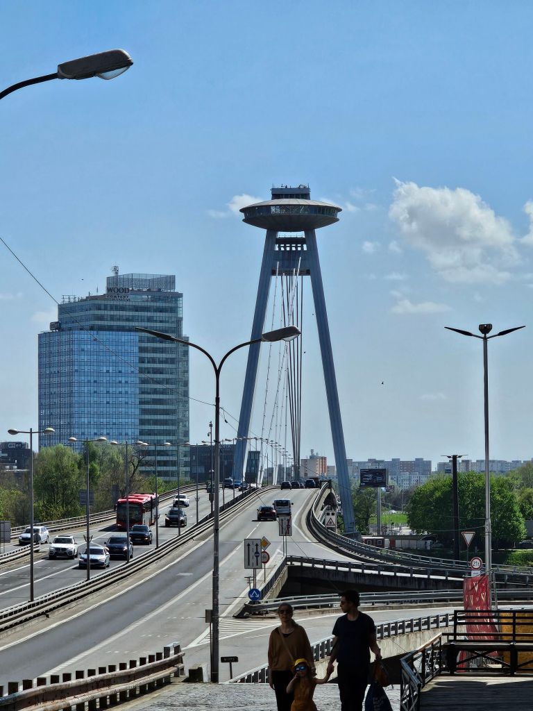 ブラチスラバ Bratislava 到着。ドナウ川から城を一気に見学して、あとは時間を見ながら空港行きのバス乗り場のある、中央駅方向に向かいながら街を散策するという、これまたゆるゆるの計画。そのために降車したのが例のUFO橋のブラチスラバ城側の、正確には橋の下にあるバス乗り場Bratislava Mostでした。トラムやトロリーバスを使わずに旧市街地に到達できるので、ウィーンからのバスではここでの降車をお勧めします。