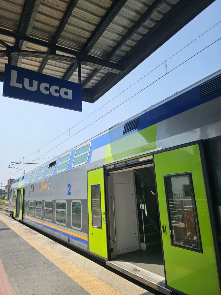 さて、ピサの斜塔に上るという目標を達成したので、ピサから電車で30分ほどのところにあるルッカに移動する事にしました。バスも斜塔のある広場の横から出ているのですが、ちょっとだけ時短の電車です。