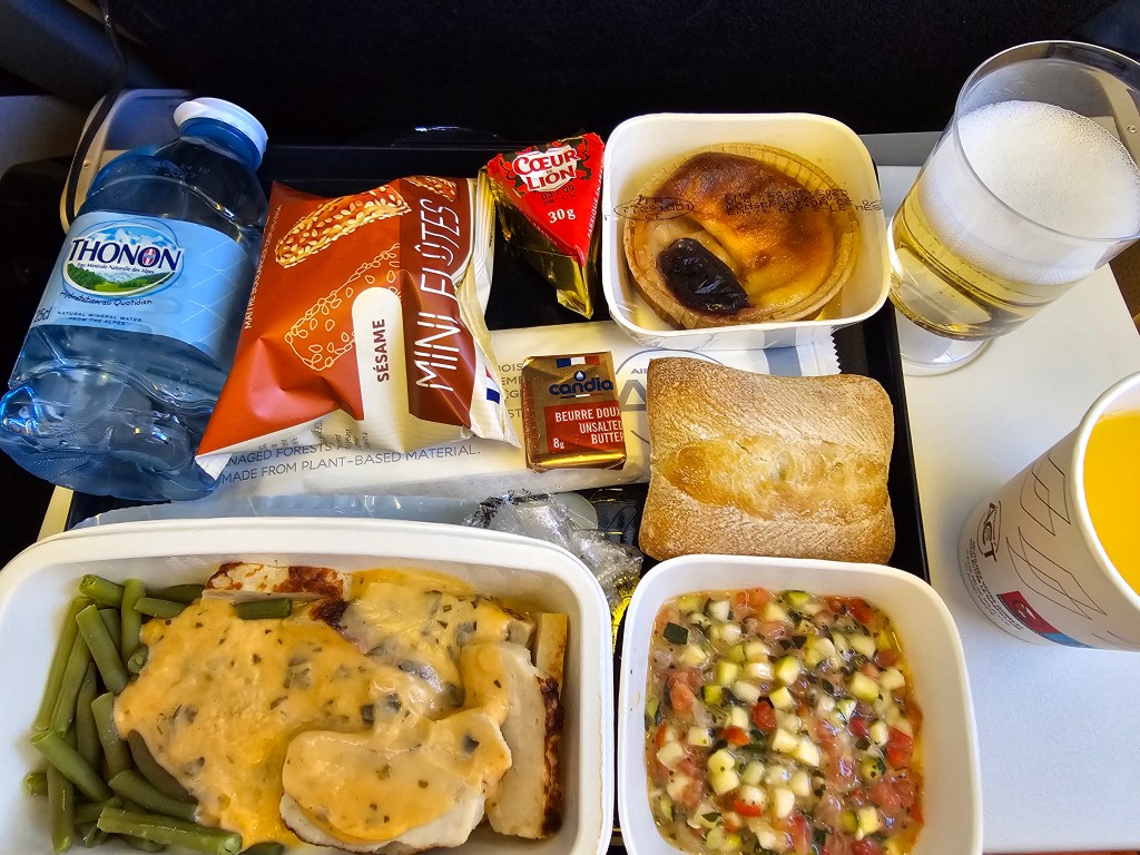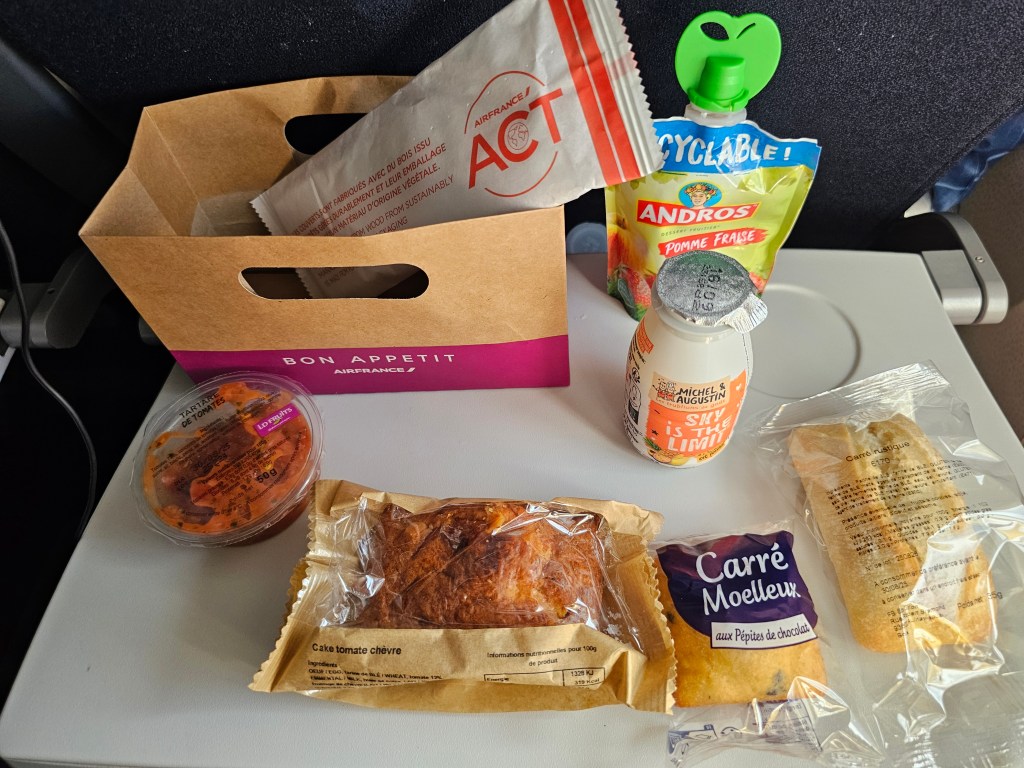 マンチェスターからパリへの便ではパリらしくマドレーヌがスナックとして出されました。エールフランスは謎の組み合わせのサンドイッチで毎回悩まされるので、今回はシンプルながら美味しくて嬉しかったです。ドゴール空港はそれといったこともなく、リマ行きの便へ。ここから一気に公用語がフランス語とスペイン語の世界でした。