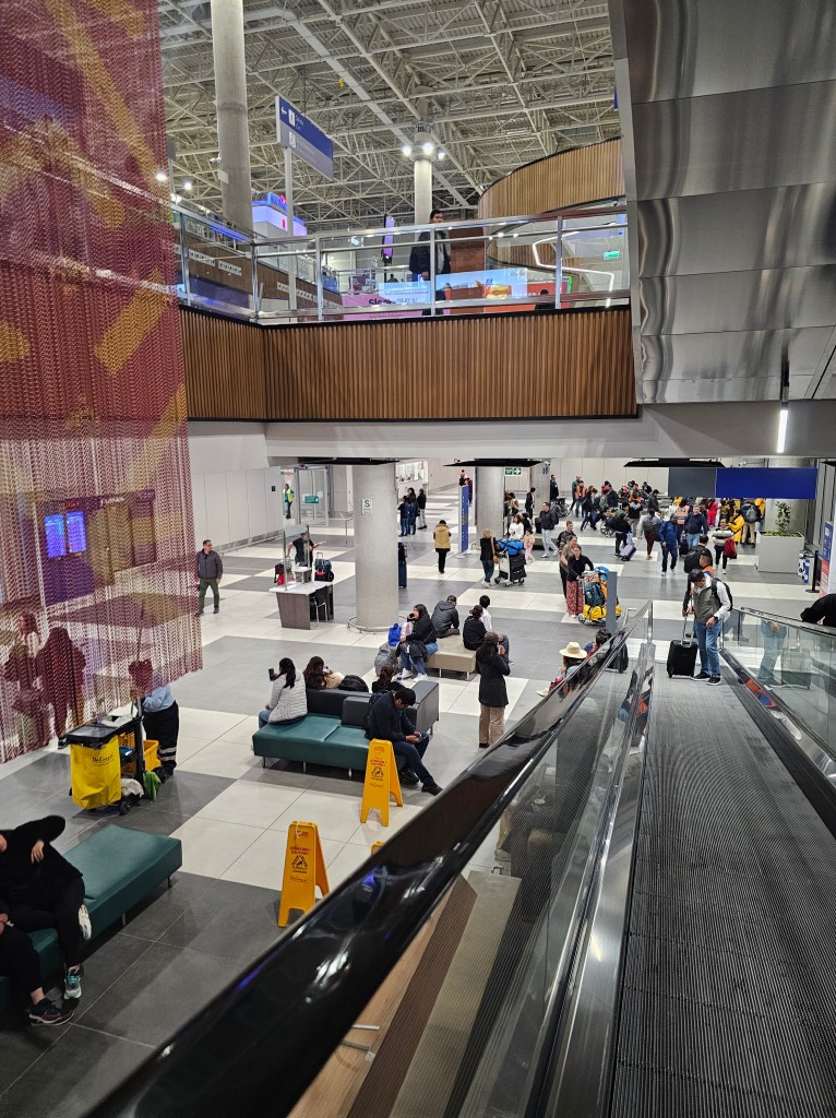さて、ここリマ空港は空港内での乗り換えが出来ないので、一度出口から到着ロビーにでて、目の前にあるエスカレーターで3階の出発ロビーに移動して、保安検査を受ける必要があります。ここで、感動したのがスキャナーは最新式で液体も携帯やバッテリー等のガジェットもバッグから出す必要がなくて非常にスムーズだったこと。おそらく、保安検査に並ぶ時間を入れても5分もかかっていなかったと思います。