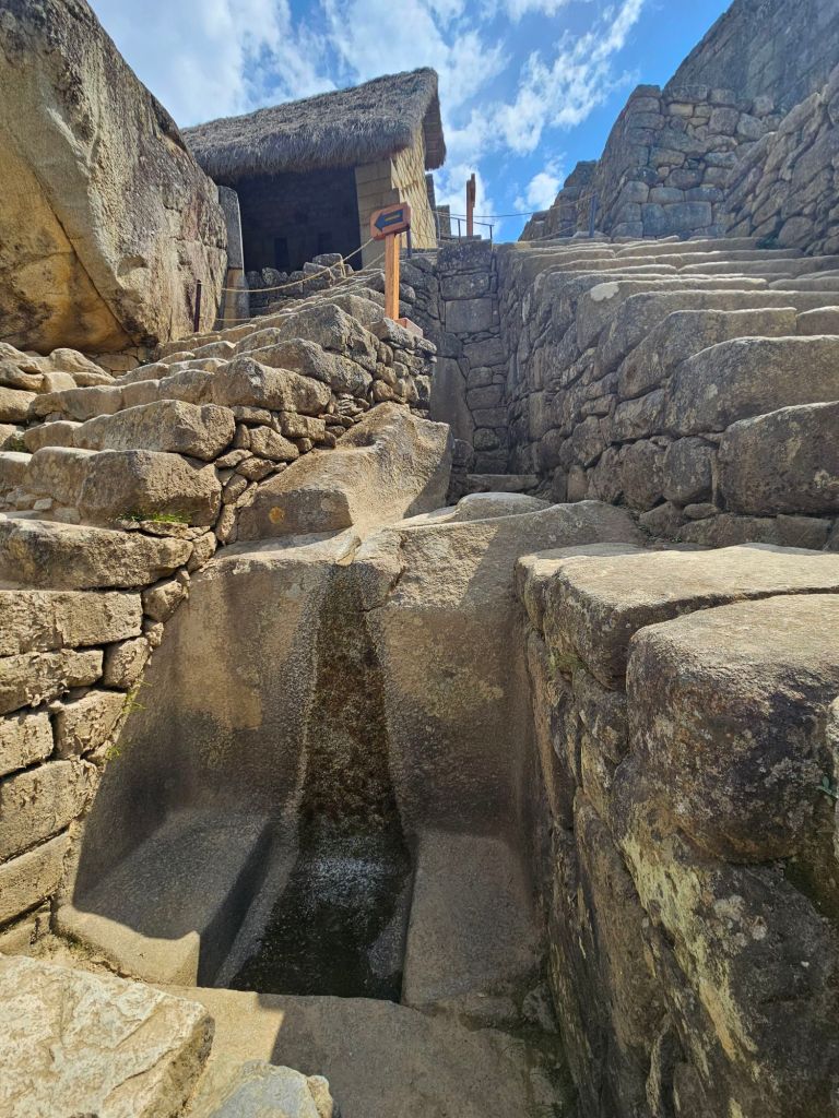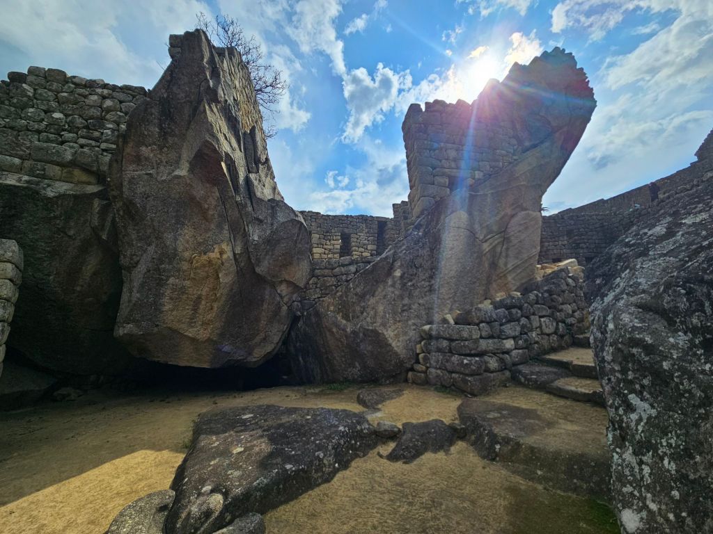 インカ帝国の首都であるクスコがピューマの形に都市計画をされているのに対して、ここマチュピチュはコンドルが飛ぶ形をしています。インカの宗教観では、ピューマは、現在であり権力を表し、コンドルは天界や精神世界を表します。つまり、マチュピチュはウィラコチャに捧げる神殿として建設され(途中放棄してますが)撤退する時に神聖な場所なので封じて隠したのではないか、と言われています…と、いう説明がありました。