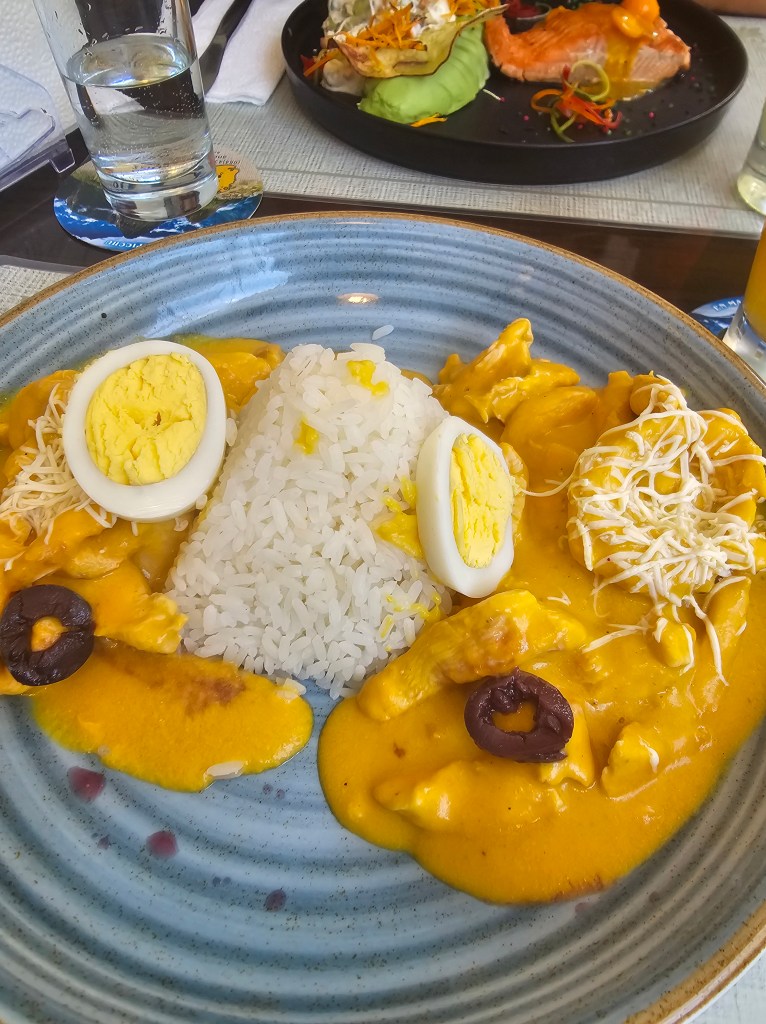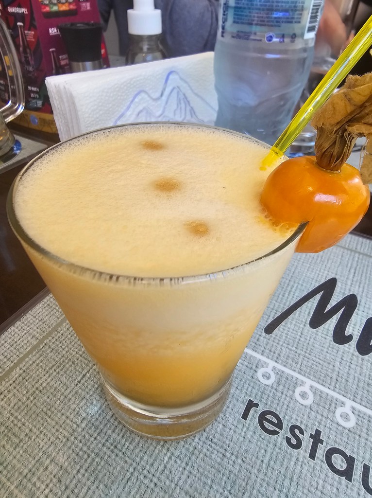 二日目はペルーの代表的な料理、Aji de Gallina。唐辛子が入ったチキンのクリーム煮。唐辛子という割には甘かったです。そして、パッションフルーツ味のピスコサワー。これは、好み。かなり度数が強いけれど飲みやすい。高所なので飲み過ぎには注意しないと。
