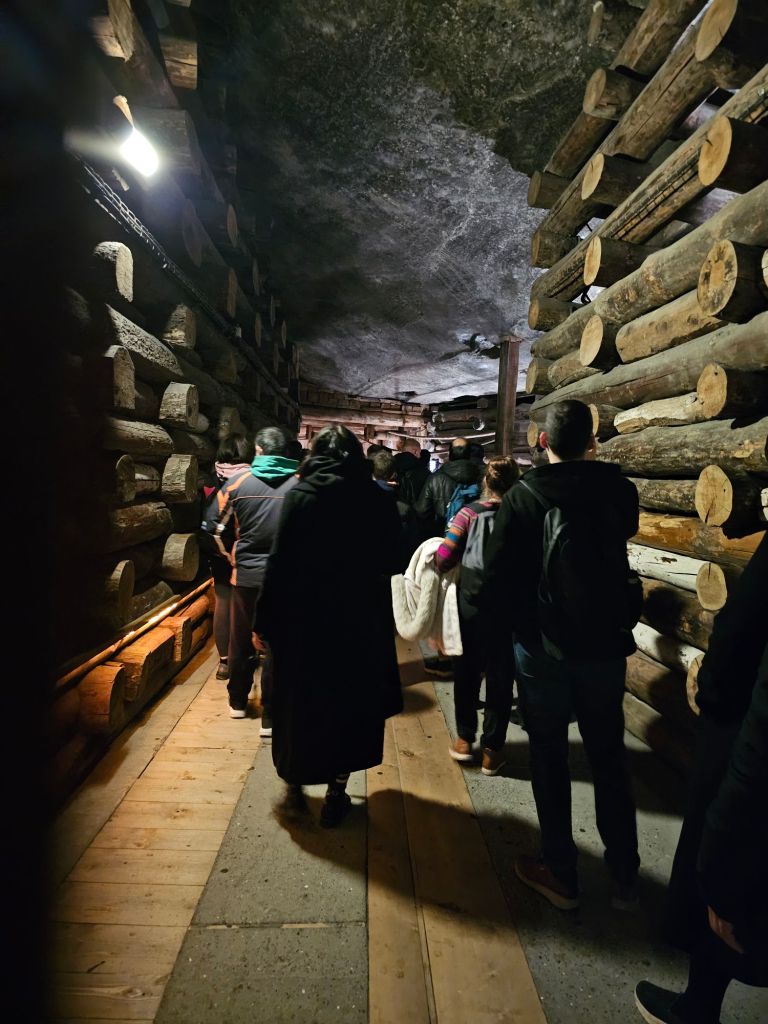 ツアー最初は、木製の階段を延々と下降して行きます。13世紀から採掘されていた岩塩の採掘場でレベル1からスタート。