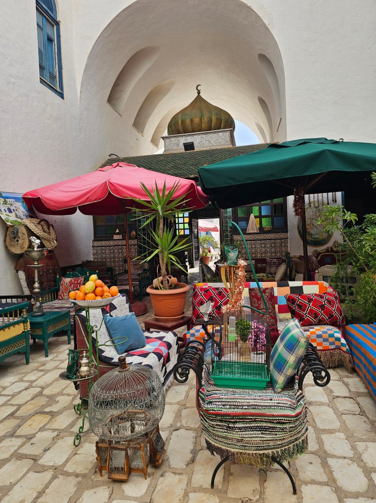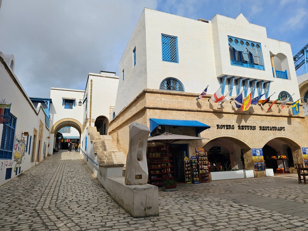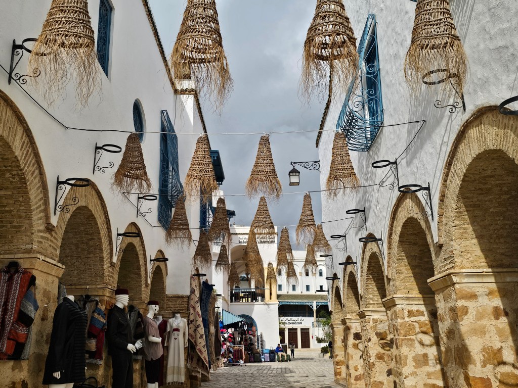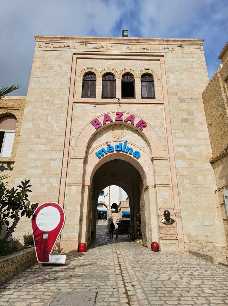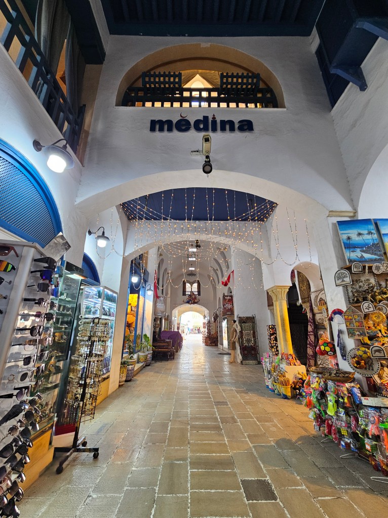 外から見ると、大型のショッピングモール。中もそんな感じでメディナの通路の幅が広くて清潔感がありました。普段、お土産はマグネット位しか買わないのですが、全く同じものが値段的にはここはチュニスよりも安く、他の土産物もざっと見ると安い傾向にあると思いました。チュニスのごちゃごちゃとしたメディナが苦手な人でも、ここなら大丈夫。ここでは値段交渉はほとんどなく『定価』で売られているものも多かったです。先ほどのビーチで値段交渉したばかりなので、この場所がショッピングモール化しているだけなのかも知れません。