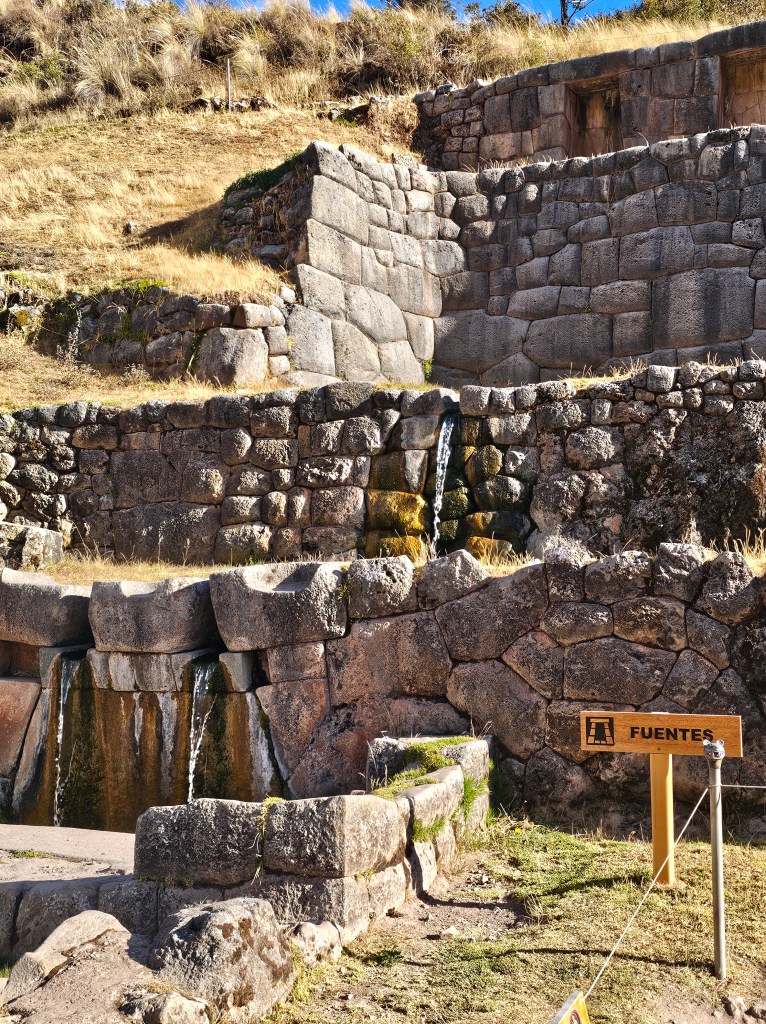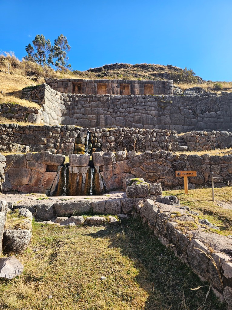 ここ、タンボマチャイは自然の湧水を取り込んだ遺跡で、人工の滝や小さな浴場があり、今でも水が流れています。