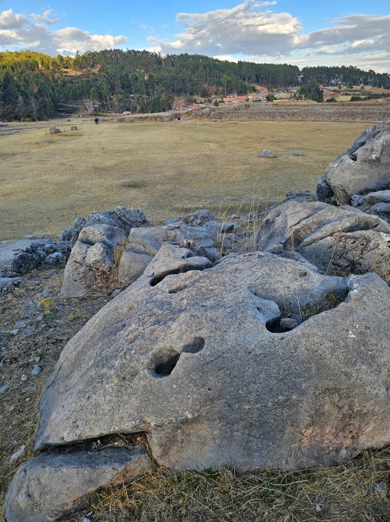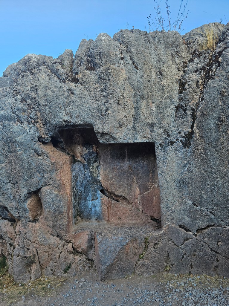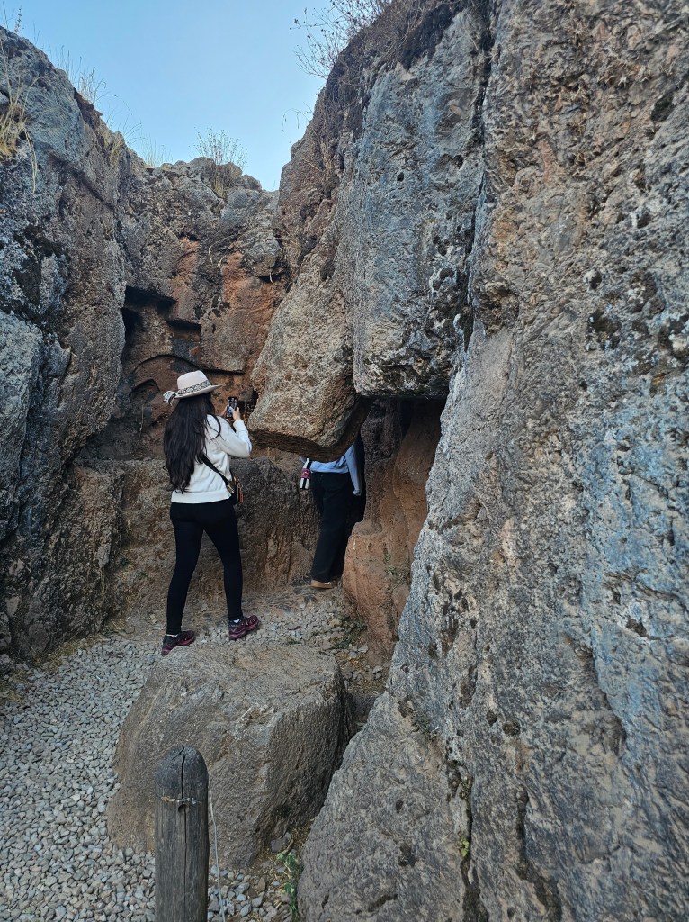サクサワイマンに入ると、切り込みが入った岩があちこちにあり、もう一つの洞窟の方へと続きます。